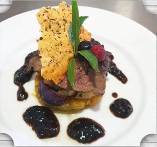 Foie de buffle rosé à la compotée de giraumon et sa réduction de vinaigre de fruits rouges